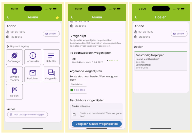 We zien echter dat de app steeds intensiever wordt gebruikt. Daarom maken we deze functionaliteit nu ook beschikbaar in de app, zodat je als behandelaar niet meer hoeft te schakelen tussen verschillende omgevingen en alles direct bij de hand hebt.