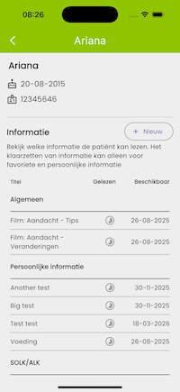 Voorheen kon je in de app alleen de persoonlijk klaargezette informatie-items van een patiënt bekijken. Daar is nu verandering in gekomen, waardoor je naast deze persoonlijke content ook de algemene informatie-items kunt openen en bekijken zoals de patiënt ze ziet.