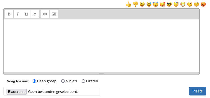 Bij het plaatsen van een nieuw bericht als behandelaar krijg je dan de optie om aan te geven dat dit bericht gekoppeld moet worden aan een groep. Na het opslaan zien zowel behandelaar als patiënt bij dat bericht de naam van de groep en kan er ook op gefilterd worden.