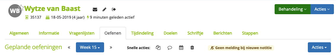 Als een patiënt een nieuwe persoonlijke notitie toevoegt bij een oefening, krijg je daar als behandelaar standaard geen melding van. Alleen als de patiënt hiervoor rechten heeft, kan deze zelf via een vinkje aangeven dat er een melding verzonden wordt bij het toevoegen van een nieuwe persoonlijke notitie.