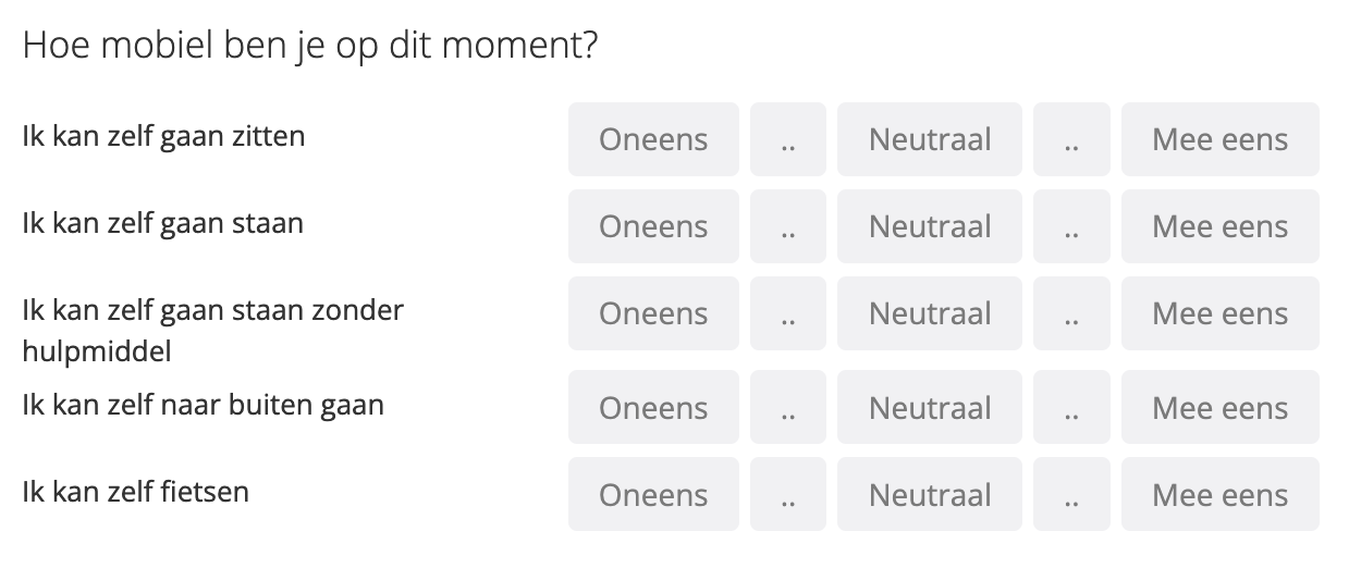 Verder is er een nieuw vraagtype toegevoegd: Een matrix. Hiermee kun je makkelijk meerdere keren multiple choice vragen stellen met een andere vraagtekst maar dezelfde antwoordopties.