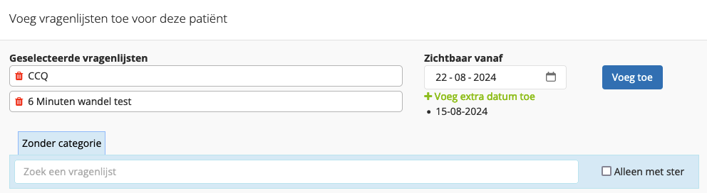 Bij het klaarzetten van vragenlijsten voor een patiënt kun je nu ook meer dan één datum opgeven. Dit is nu dus gemakkelijker voor vragenlijsten die vaker beantwoord moeten worden.