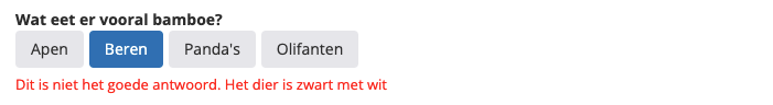 In deze release is daar nu een mogelijkheid voor. Om hier gebruik van te maken geef je bij een vragenlijst aan dat deze alleen alleen bedoeld is voor informatie items. Vervolgens kun je bij vragen van het multiple choice type 'Keuzeknoppen' aangeven welk antwoord het goede antwoord is en eventueel een hinttekst toevoegen.